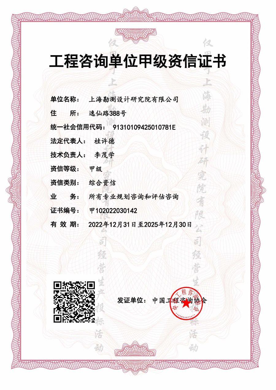 工程咨詢單位綜合甲級(jí)資信評(píng)價(jià)